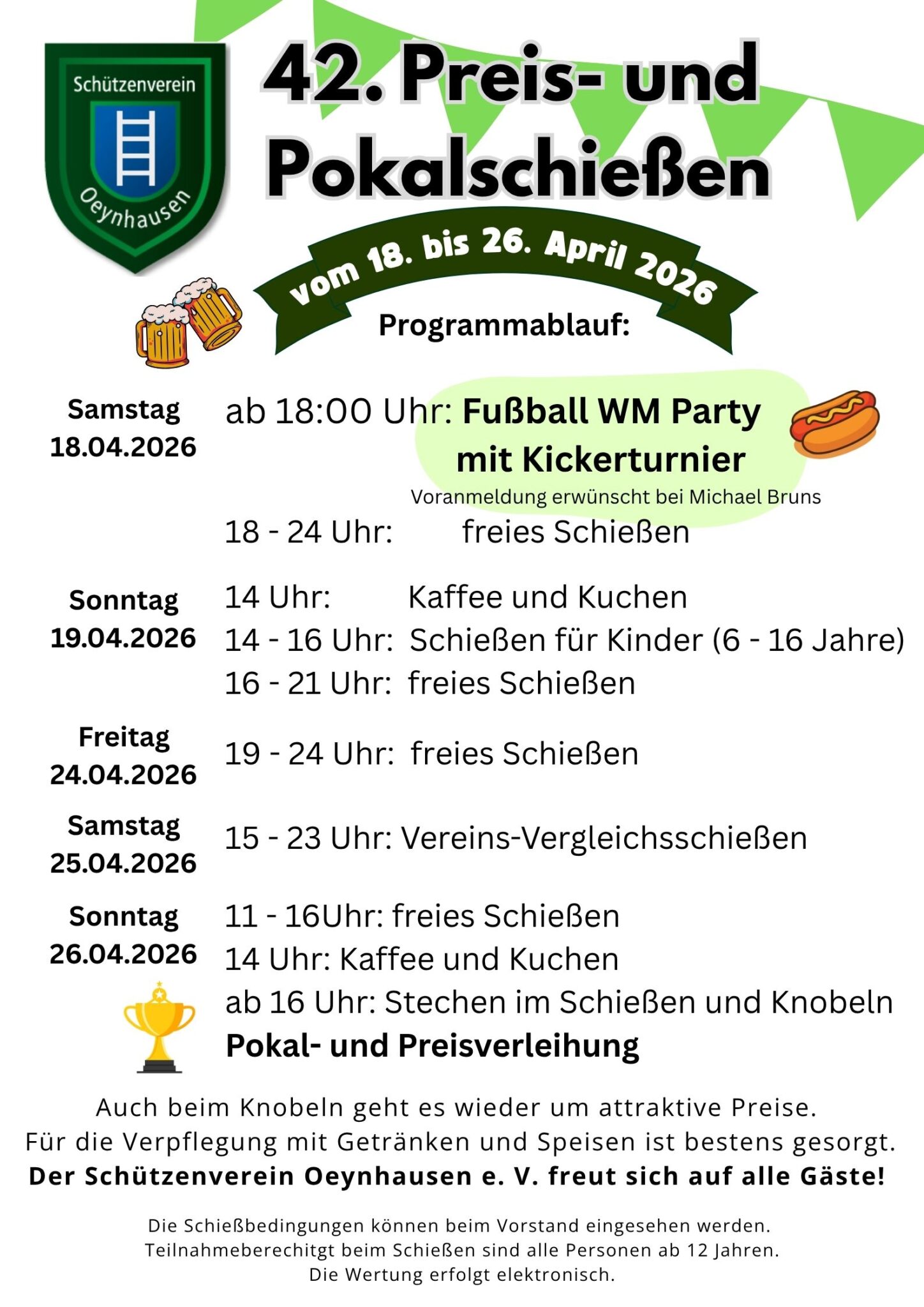 42. Preis und Pokalschießen *** 42. Preis- und Pokalschießen ***Es ist wieder soweit! Ab dem 18. April findet wieder unser alljährliches Preis- und Pokalschießen im Bürgerraum statt! Neben attraktiven Preisen Weiterlesen »